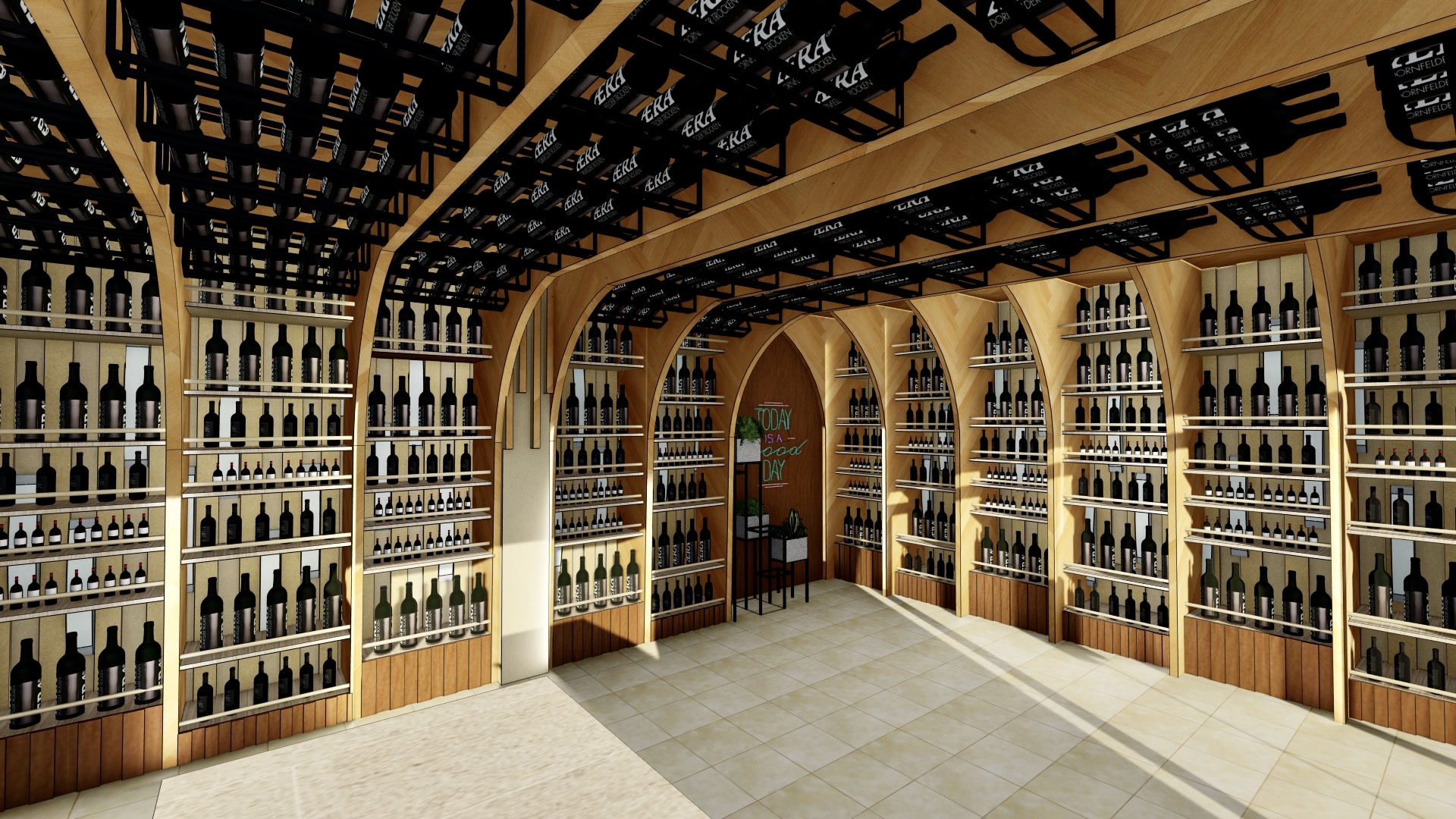 View ProjectThis 600-square-foot liquor retail store is designed around a bold and immersive ceiling concept that transforms a compact space into a visually striking retail environment.